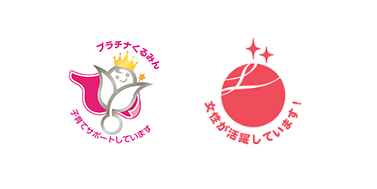 「プラチナくるみん」は「子育てサポート企業」の中でも、両立支援の制度の導入や利用が進み、さらに高い水準の取り組みを行った企業において与えられる特例認定です。男性育休取得率100%超を継続し、育児等との両立をサポートする取り組みを推進した結果、認定を取得しました。また、女性の活躍推進に積極的に取り組んでいる企業として、厚生労働大臣から「えるぼし認定」も受けています。